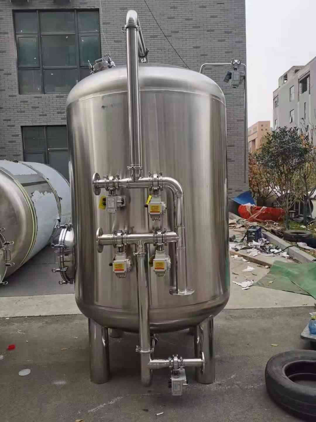 机械过滤器的大小根据水量而定,材质有304不锈钢或316不锈钢以及玻璃胶,还要根据给水水质情况和出水水质的要求,可选择单层滤料、双层滤料或多层滤料。滤料也有多种,有石英砂、活性炭、锰砂等。